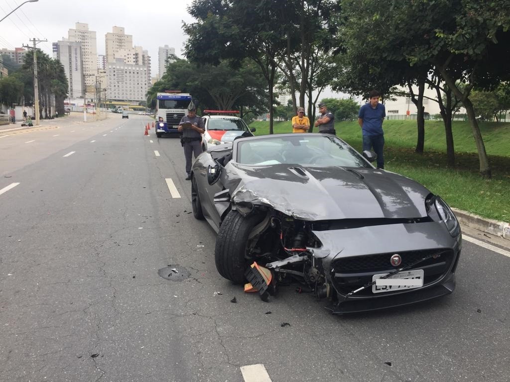 Um acidente destruiu a frente de um Jaguar, esportivo de luxo avaliado em quase R$ 400 mil, em São José dos Campos (SP). A batida, na manhã desta sexta-feira (26), envolveu uma SUV Duster. Os motoristas dos dois veículos sofreram apenas escoriações.