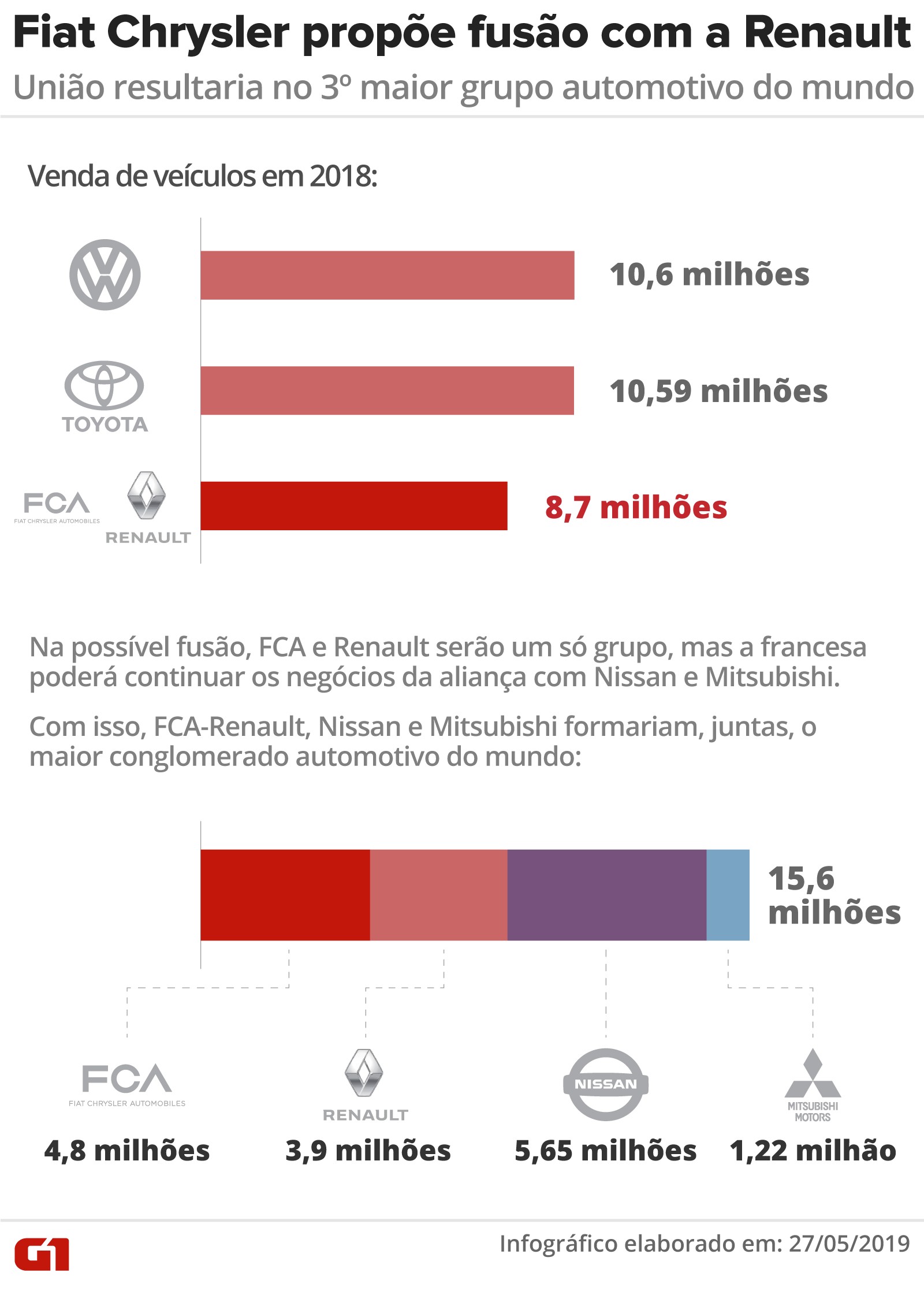 Fusão entre FCA e Renault formaria nova ‘gigante’ do setor automotivo